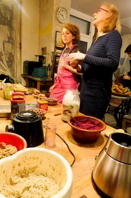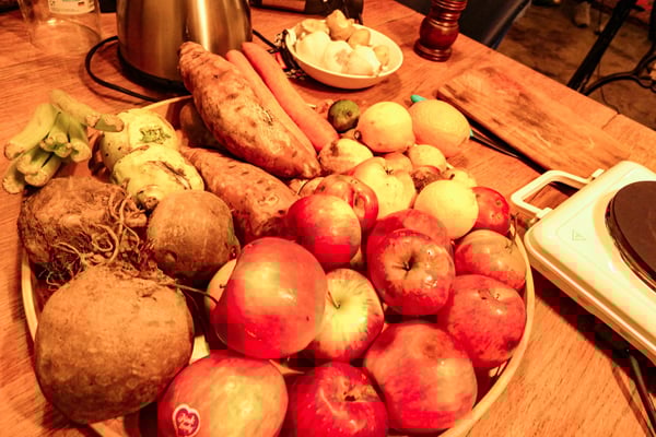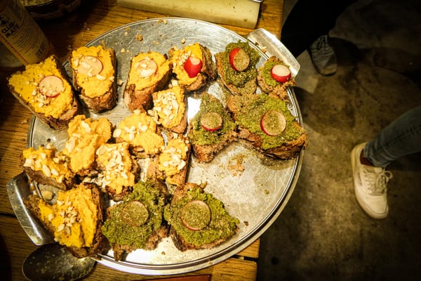 Und genau das hat uns Edith und ihre Kollegin dann auch gezeigt: Möhrengrün, Schale von Roter Beete, Süßkartoffel und Co? Alles gerettet und von der Wurzel bis zum Blatt verwendet. Das wurde alles zu leckeren Brotaufstrichen und Pestos verarbeitet! Einige der Rezepte findet ihr hier: http://restlos-gluecklich.berlin/unsere-rezepte