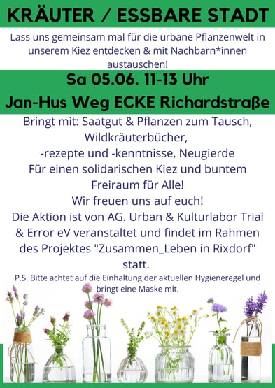 Die Aktion ist von AG. Urban & Kulturlabor Trial & Error eV veranstaltet und findet im Rahmen des Projektes "Zusammen_Leben in Rixdorf" statt.