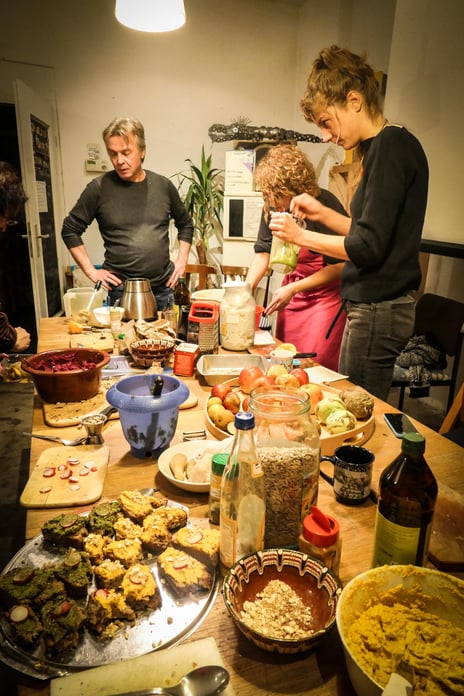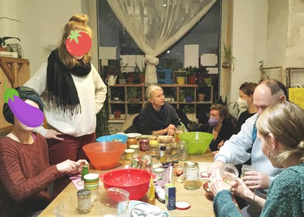 Seit September veranstaltet Trial&Error jeden ersten Freitag im Monat eine Schnippedisko. Das hat bisher sehr viel Spaß gemacht! Im September haben wir eine große Suppe und ein Abendessen aus gerettetem Gemüse gekocht, im Oktober gab es eine Kuchenparty und im November drehte sich alles um die Haltbarkeit von Produkten: Trocknen, Fermentieren und Einmachen.