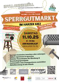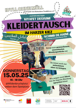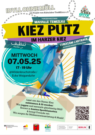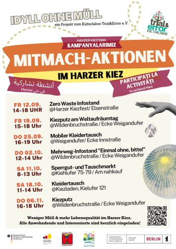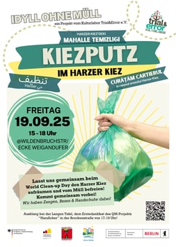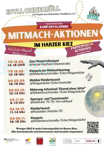 Macht mit, lernt, trefft Nachbarn, tauscht Euch aus und packt mit an – für weniger Müll und mehr Lebensqualität im Harzer Kiez!
