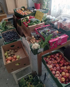 Unser Keller wird zweimal pro Woche als Verteilungsstelle für zwei solidarische Landwirtschaft Projekte genutzt: Gemüse Syndikat und Sterngartenodyssee.