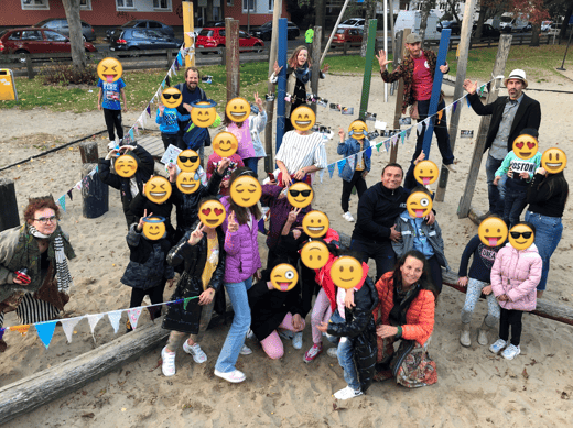 To close a year of playful creation, we celebrated our very own “Herbstfest // Petrecere de toamnă” at Indianer Parks playground. We decorated ourselves with face paint, and decorated the playground with a gallery of art and photos from the project, to give the children and their families a chance to be proud of all they had created together. Together we made music, circus, danced, ate delicious food and shared our gratitude for the beautiful community that had evolved from the project.